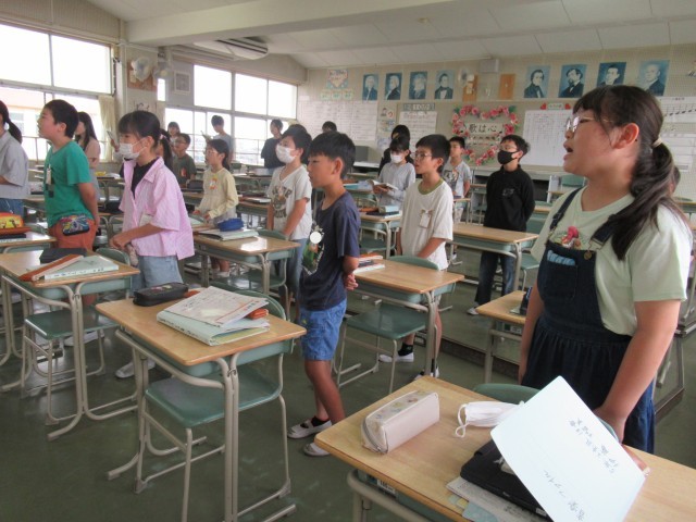 音楽(5年生) 公開日 2025/10/04 更新日 2025/10/04 5年生 今月の歌「ビリーヴ」の練習。よく知っている歌なので,みんな元気よく歌っています。音楽室に掲示してある「歌唱10か条」を意識して合唱に取り組んでいます。 いいね(1)