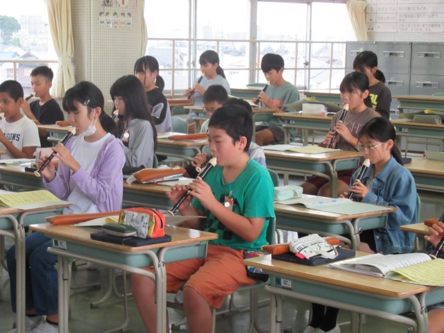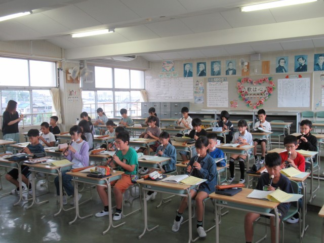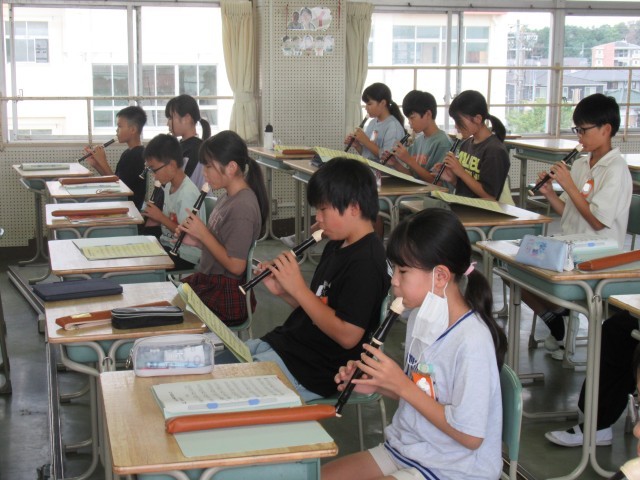 リコーダー練習で「星笛」を吹きました。5年生らしくきれいな演奏をしていました。