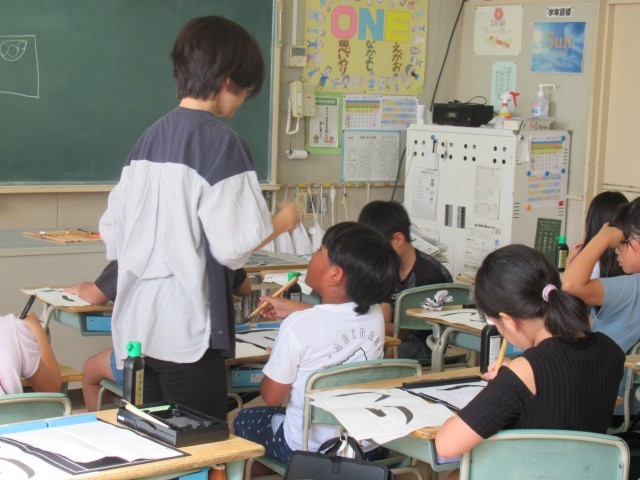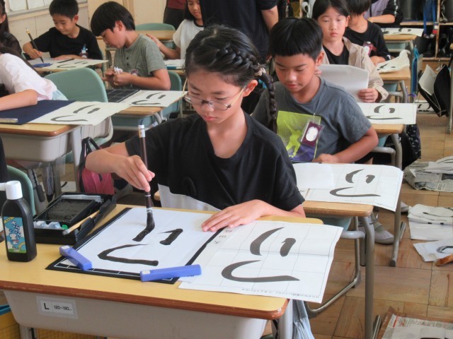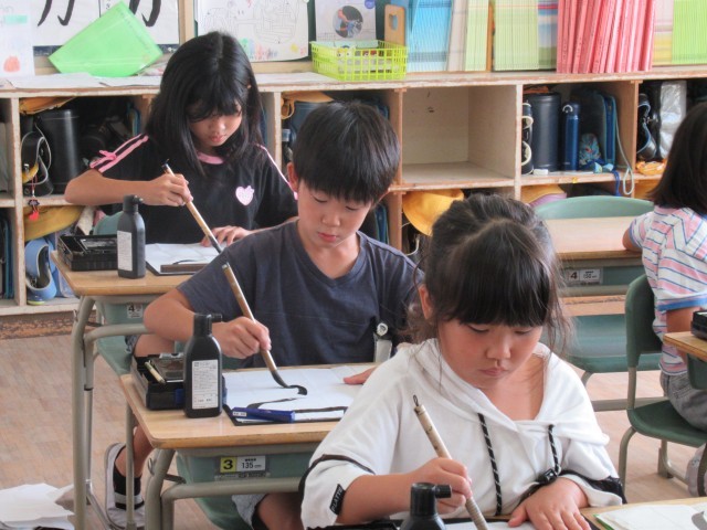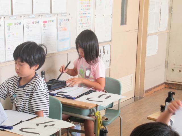今日も書道連盟の先生の書写指導です。「つり」をきれいに書くためのポイントを教えてもらいました。