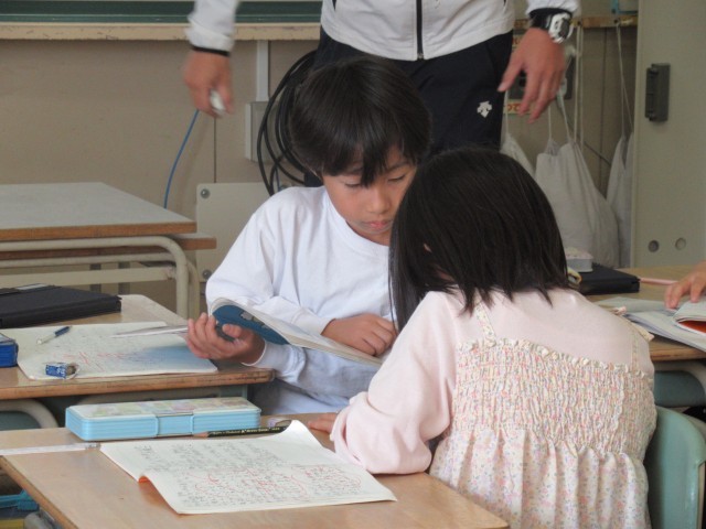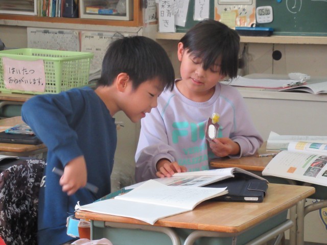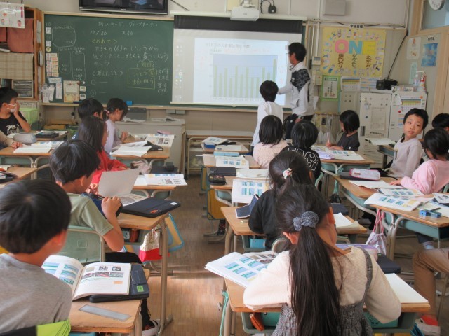 小牧市の月別事故発生件数のグラフを見て、気づいたことをペアで話し合いました。