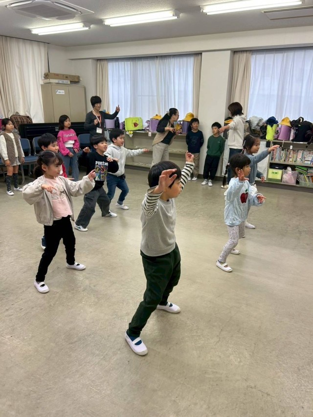 脳と手と足、目と耳‥たくさんの器官を働かせながら、楽しく動いたり、踊ったり、体で表現したりと楽しいひと時を過ごしました。
