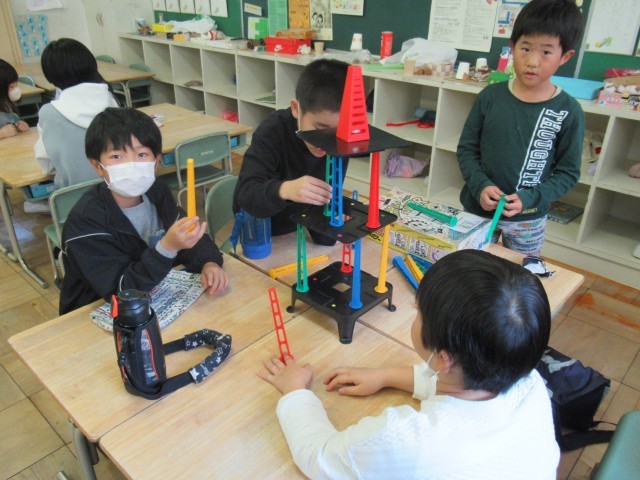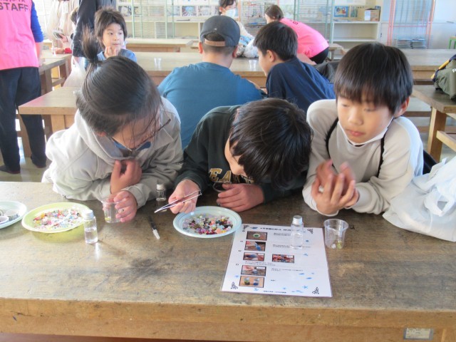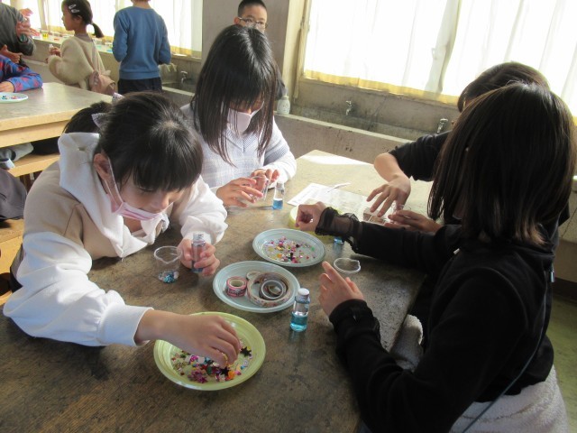子育て支援部の「不思議なボトルづくり」、味岡児童館のボードゲームの様子です。