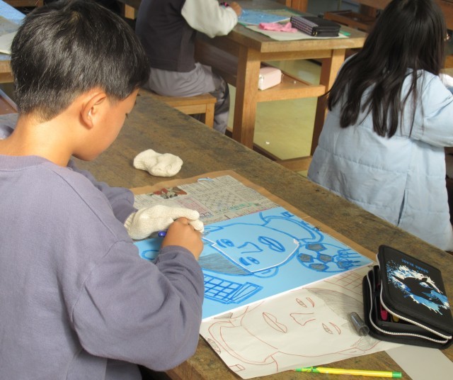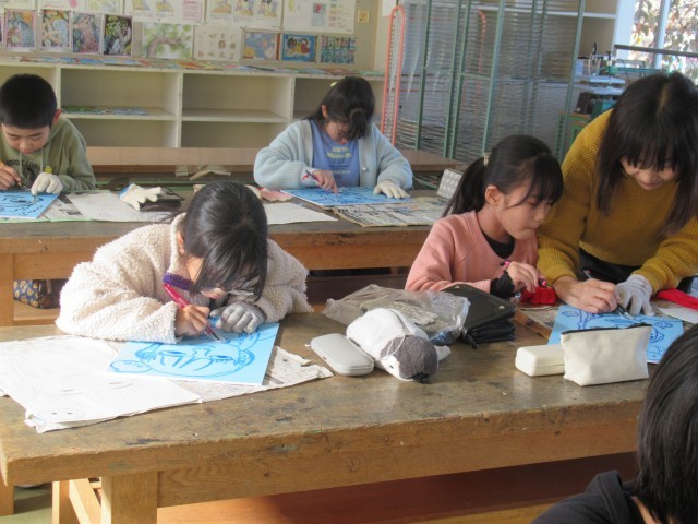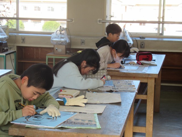 図工(4年生) 公開日 2025/11/20 更新日 2025/11/20 4年生 図工で木版画に取り組んでいます。初めて使う彫刻刀でドキドキしながら、版を削りました。できあがりが楽しみです。 +2 いいね(1)