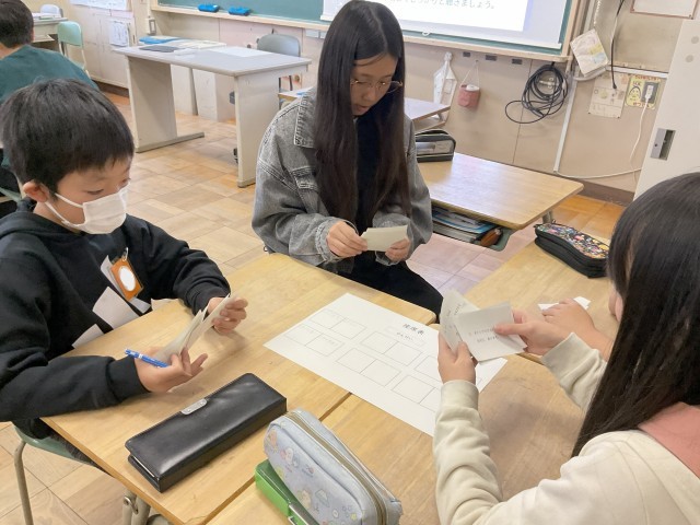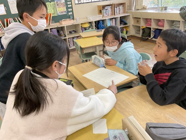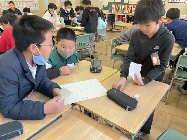 学活(5年生) 公開日 2025/11/26 更新日 2025/11/21 5年生 班で謎解きを行いました。一人ひとりに違うヒントが与えられ、それらを班で共有し合い、みんなで正解にたどり着くという内容です。協力することや、相手の話をしっかり聴くことの大切さを実感できたようです。 いいね(1)