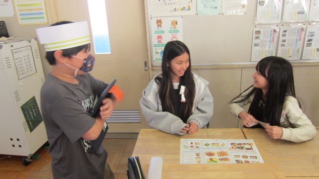 外国語(5年生) 公開日 2025/12/04 更新日 2025/12/04 5年生 「 What would you like? 」 「 I'd like ~ . 」 など、これまでに学習した表現を使って、お店屋さんをしました。楽しみながら、たくさん英語を使うことができました。 いいね(0)
