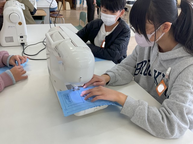 今日はミシンで練習布を縫いました。真っ直ぐに縫えるように、一生懸命取り組んでいました。