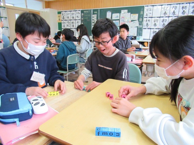 英語(5年生) 公開日 2026/03/03 更新日 2026/03/03 5年生 英語で単語をブロックで作るゲームをしました。カードに書かれている単語をアルファベットが書いてある四色のブロックで作ります。 いいね(2)