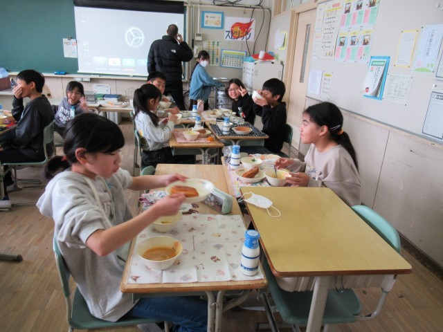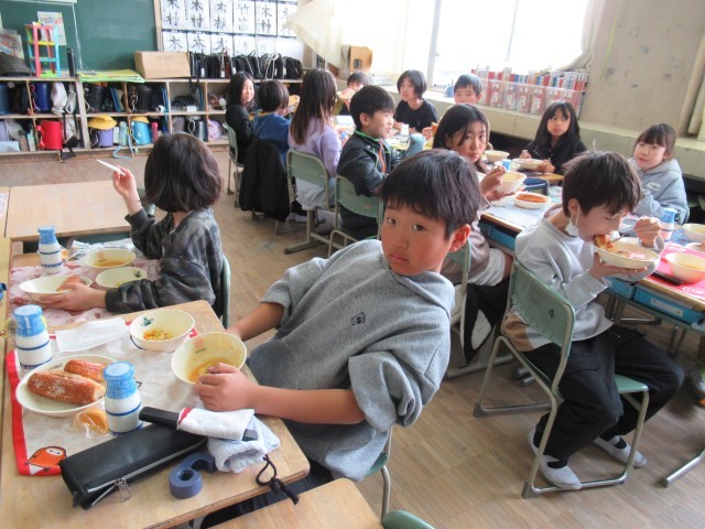 給食の様子(4年生) 公開日 2026/03/06 更新日 2026/03/06 4年生 今日の献立は「揚げパン 牛乳 豆乳入りキャロットポタージュ ウインナーと野菜のソテー オレンジ」です。みんなの大好き「揚げパン」です。 +2 いいね(1)