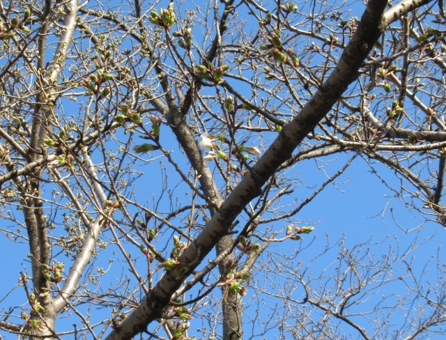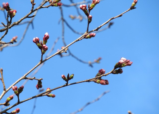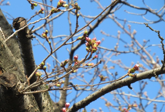 学校の桜も、つぼみが膨らみ、薄く色づいてきました。