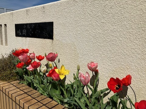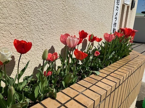 正門横の花壇に植えてあるチューリップが満開になってきました。