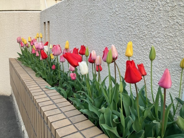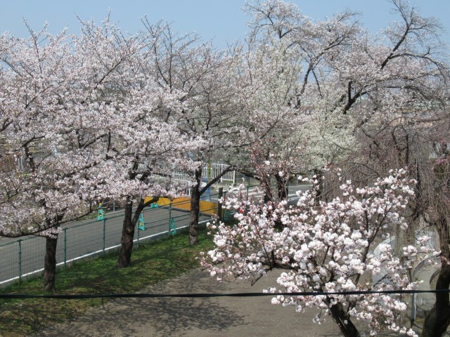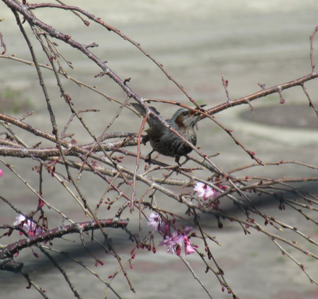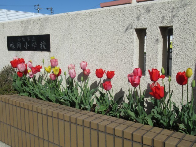 とても暖かい日が続いています。正門前のチューリップも満開。中庭の桜も満開の木も出始めました。また、鳥も活発に活動を始めています。