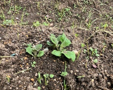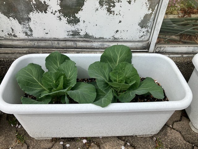 新学期に向けて、前の学年で植えたキャベツやジャガイモが成長してきています。