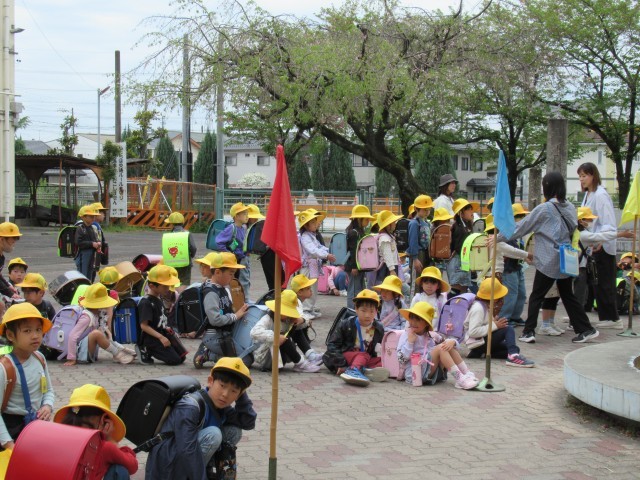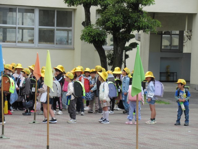 今日は1年生だけでの下校です。通学団別に分かれて、それぞれ教員が引率をして下校します。