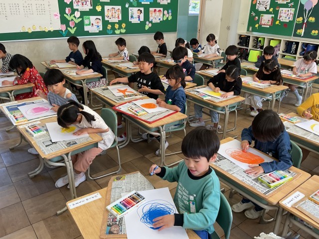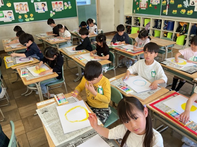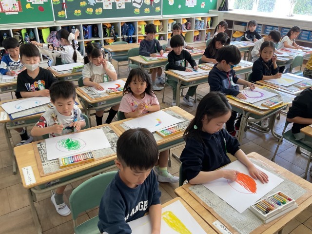 図工の授業で「わたしのおひさま」を一生懸命描きました。