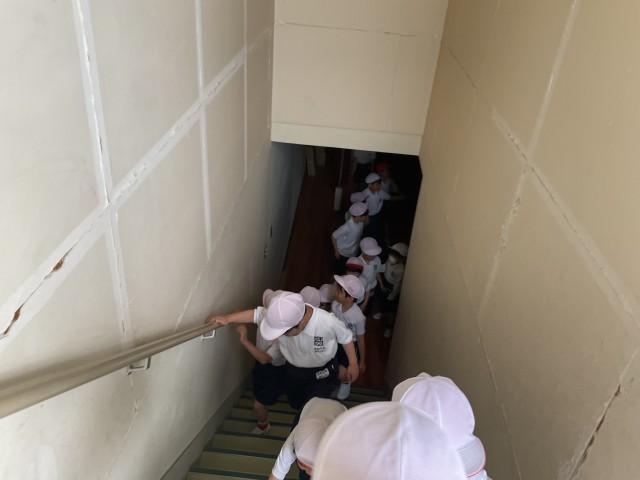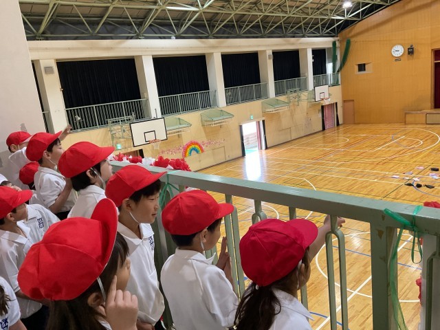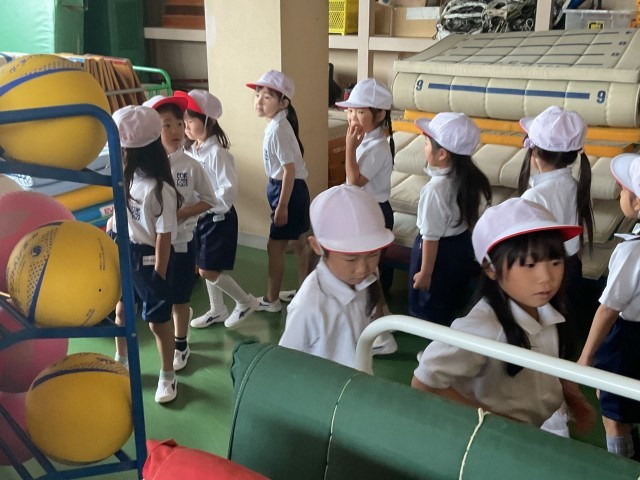 器具庫でたくさんの道具を見たり、上から体育館の様子を眺めたりしました。
