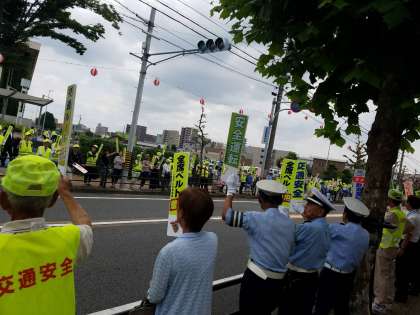 7月11日(火)小牧市市民会館前にて行われた夏の交通安全街頭キャンペーンに参加しました。