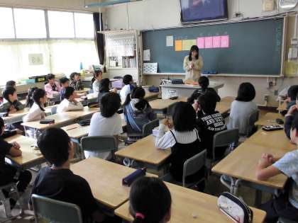 村瀬先生に「ピンクの冷蔵庫」というお話をしてもらいました。聴いた後に、やる気がわいてくるとてもいいお話でした。