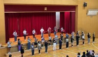 運動場では、ボール投げと短距離走の測定が行われていました。