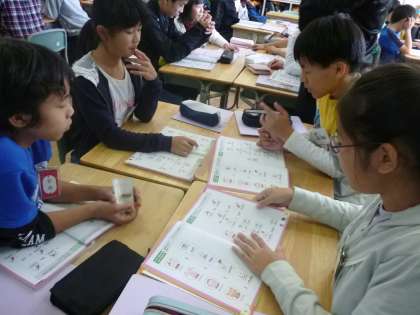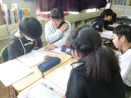 リスニングの勉強中です。聞き取れた単語は何か、班で相談中です。