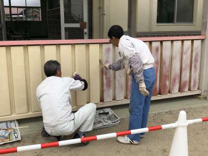 グラインダーでさびを落とし、丁寧にペンキを塗ってもらいます。