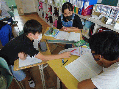 授業の風景 公開日 2021/09/16 更新日 2021/09/16 全校 3年生は、毛筆で「力」を書いています。“おれ”“はね”“左はらい”を意識して練習しています。(上段) 5年生の認知症サポーター養成講座の様子です。認知症について正しい認識を持つことができました。(下段) いいね(0)