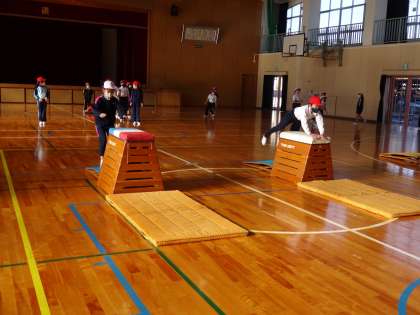 体育でとび箱に取り組みました。 踏切や着手の位置に気をつけて 練習をしました。