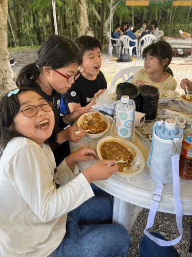 カレーライスの完成です。 ♪ごーはんだ。ごはんだ。さぁ食べよう。♪