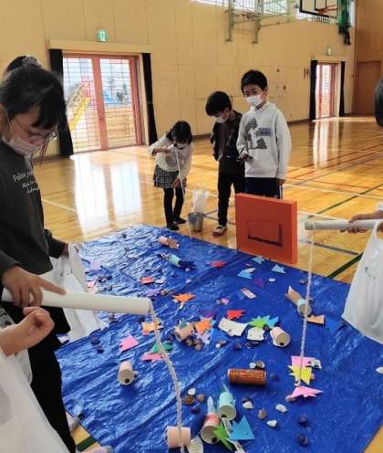 子どもたちの自由な発想の作品の出来栄えはいつもながら脱帽です。今回は2年生の児童クラブとも一緒にできて楽しいおまつりとなりました。