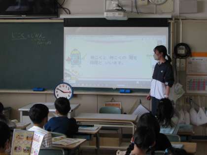 1日の生活時間に関心をもち、時計の針の動きから簡単な「時こくと時間」を求める学習をしました。模型の時計を使って、理解を深めました。生活と結びつけてより理解を深めていってほしいと思います。