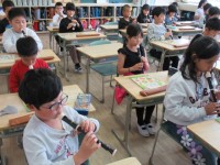 朝の会の様子です。 今月の歌「翼をください」を元気よく歌っています。