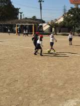 運動場の体育ではサッカーを行っていて、簡単なルールを決めて試合にも挑戦していま...