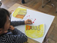 図工競技会「ふしぎな たまご」の作品づくりを行いました。いろいろな色を使って,カラフルな絵が仕上がりました。