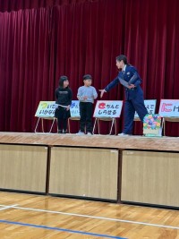 最後は代表2人の児童がステージへ不審者役に話しかけられても応えない。腕をつかまれそうになったら大声を出す練習をしました。 おまわりさんに言われた防犯ブザーの電池は確認できたかな…?次回の...