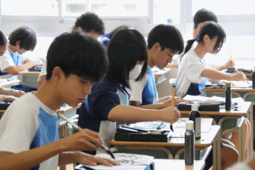 中学校最後の書写競技会です。さすが3年生!凛とした空気、書写競技会に向けた心意気が感じられました!