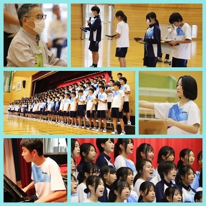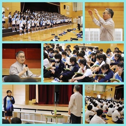2年生の学年合唱曲「時の旅人」の作曲者である橋本祥路先生をお迎えして合唱指導、作曲家になられた