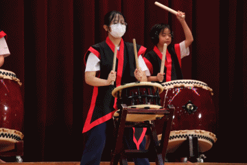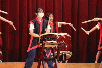 10・11・12組の生徒達による和太鼓演奏です。音楽の時間など一生懸命に練習してきました。