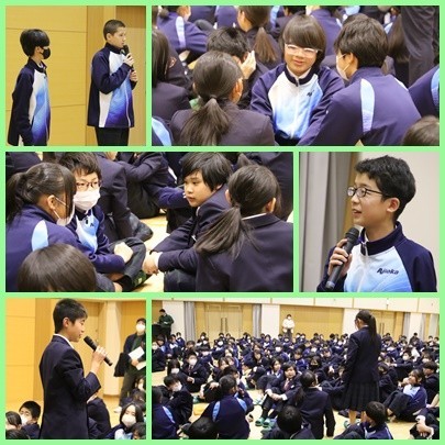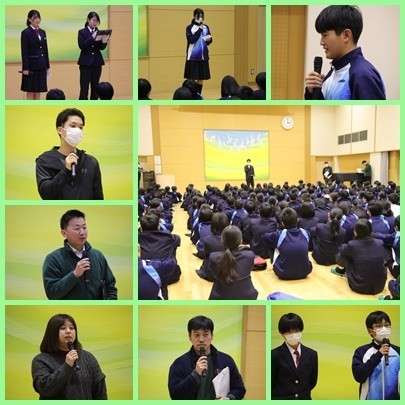 学年生徒会を中心に2学期の振り返りと3学期の抱負について話し、発表していきました。