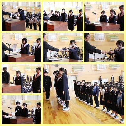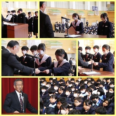校長先生、生徒指導主事の先生からの話を聞き、表彰伝達を行いました。