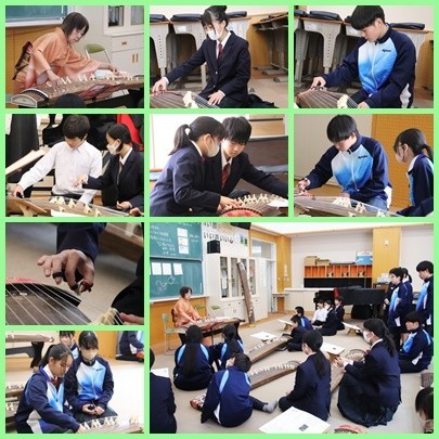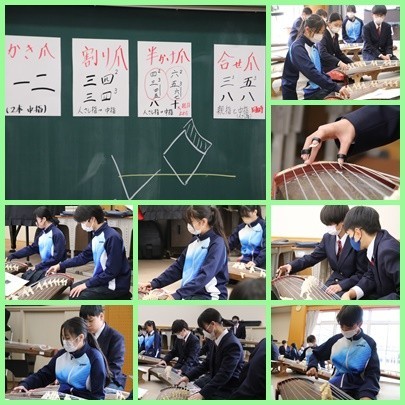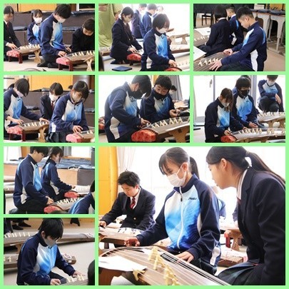 以前、味中で勤務されており、箏の師範である阿知波先生にお越しいただき、基本姿勢から様々な技法の学習、