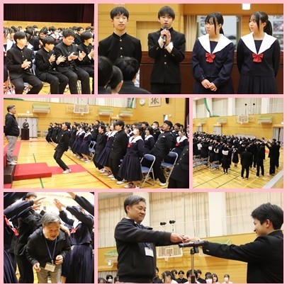 作る花道を先生が歩きました。三年間の感謝の思いがあふれた温かい素敵な時間でした!