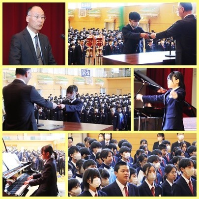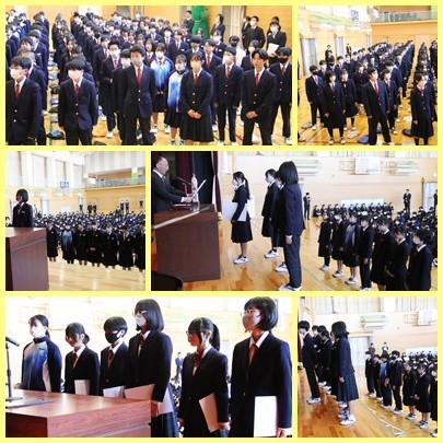 また、表彰式、令和8年度前期の生徒会役員の認証式があり、春休みについて生徒指