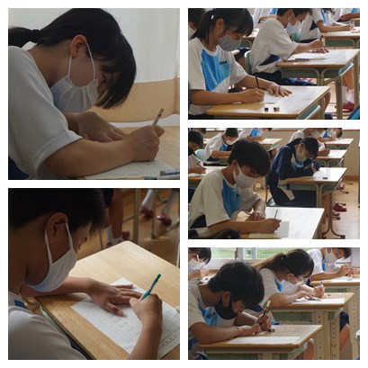 朝の時間を使って、国語のコンクールを行いました。内容は漢字です。丁寧に書くことを意識して、満点合格を目指します。