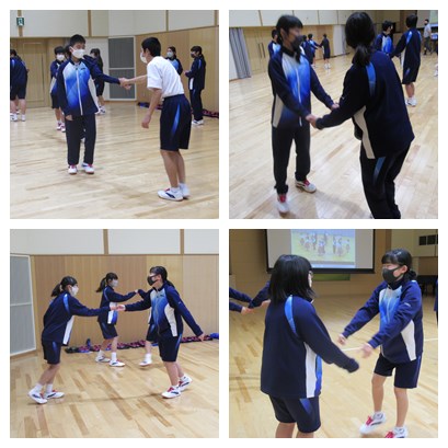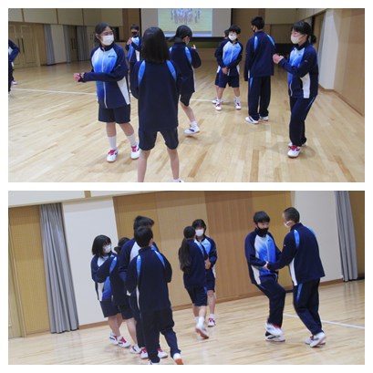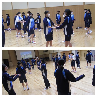 今日踊ったのは、ロシアの「コロブチカ」という曲です。ペアで練習した後に、グループになって、踊っていました。どんどん相手が入れ替わっていくダンスです。次の時間も楽しみですね。