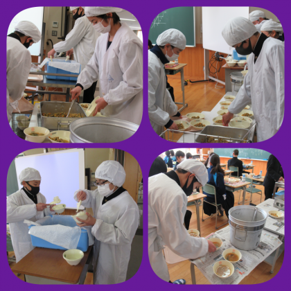今日のメニューは、ごはん、牛乳、中華コーンスープ、ビビンバ、いよかん、型抜きチーズでした。