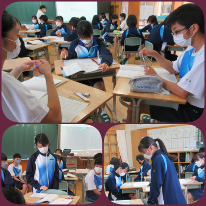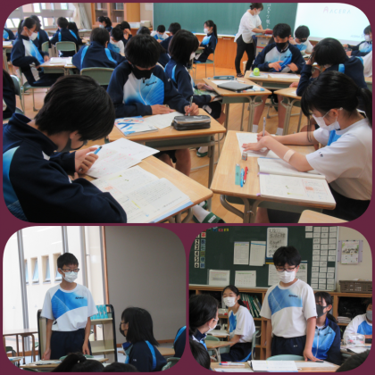 今日のめあては、段落の役割を捉えよう!班で話し合いをし、意見を出し合っていました。机の上は、必要なものだけにしておくと、集中して課題に取り組めますね。