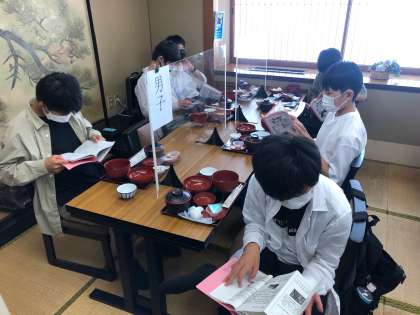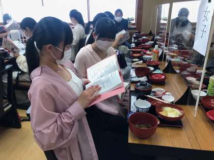 早く食べ終わった時間を活用して、次の研修に向けて調べたことの復習をしています。