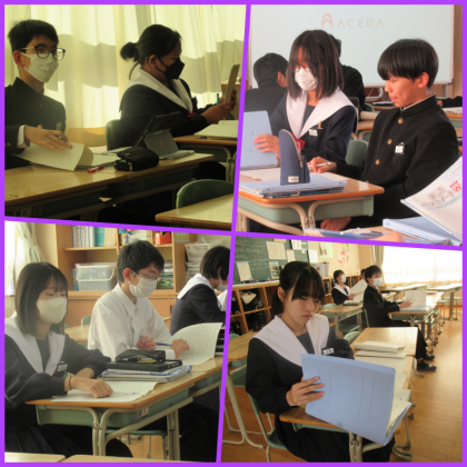 ALTの先生との会話を行っていました。今回のテーマは、「歩きスマホ」か「野菜」について、どちらかを選んで、英語で自分の考えを伝えます。とってもよい表情で会話できたようですね。
