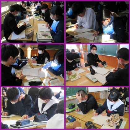 入試問題に取り組んでいました。ふり返りをきちんと行い、学びを深めています。授業で数多くの練習問題はできませんので、家庭学習で繰り返し解いていきましょう。