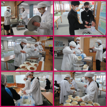 今日のメニューは、わかめごはん、牛乳、豆乳入り白みそ汁、キャベツ入りメンチカツ、グレープゼリーでした。大豆から作られる豆乳ですが、しぼりかすは、おからになるそうですよ。