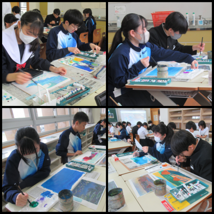 模写を行っています。実物の色を再現するのに苦労しながら、塗り進めていました。作者がどのように作品を描いたのかを考えながら、描き写していけるといいですね。
